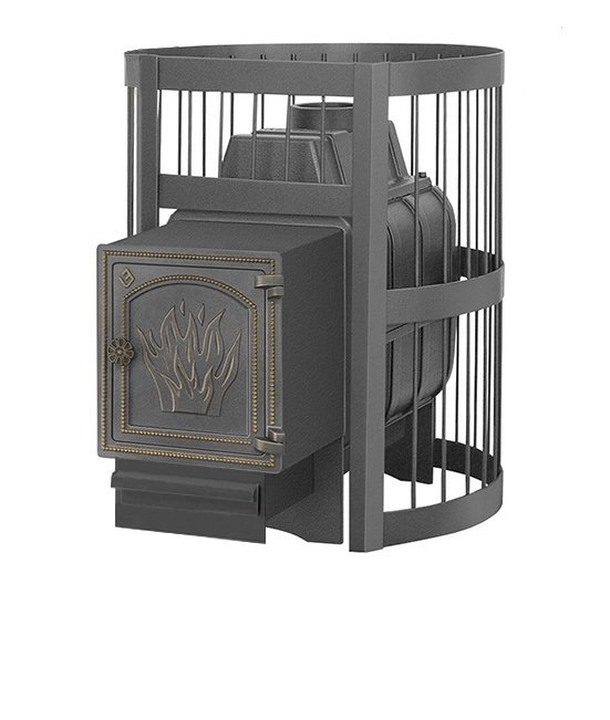 Банная чугунная печь Легенда Стандарт 16 (ДТ-4) укомплектована чугунной не герметичной дверцей Везувий ДТ-4.  Конвекционно-вентилируемый кожух "Стандарт" изготовлен из металлического прутка диаметром 6мм покрашенной черной термостойкой краской.